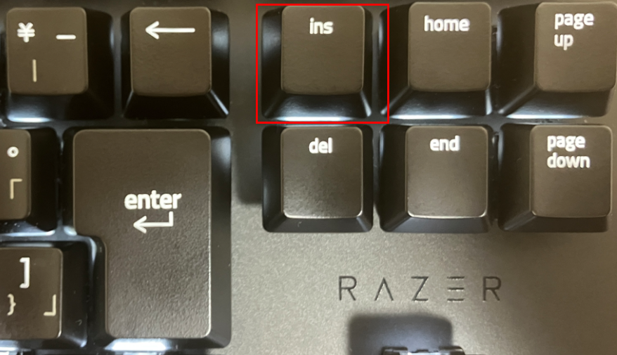 このブログを書いている時のように文字入力を長い時間行っていると、たまに意図せずに「insertキー」を押してしまっている事があります。