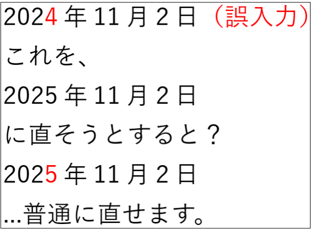 「2025年11月2日」と入力するべき箇所に「2024年11月2日」と入れてしまい、