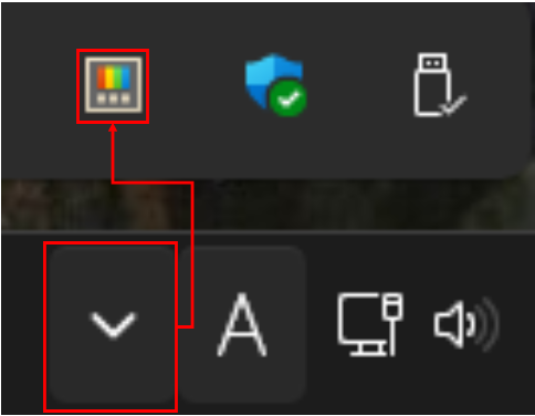 まずは画面右下のタスクトレイ(上向きの↑)をクリック、次にPowerToysのアイコンをダブルクリックします。