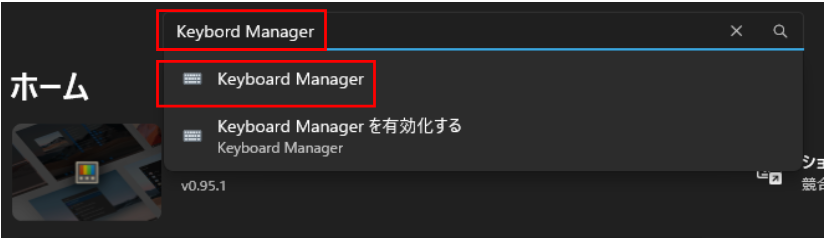 PowerToysの検索バーに「Keybord Manager」と入力して「Keybord Manager」を実行します。