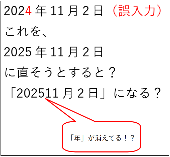 「202511月2日」となってしまう、、、あれ?「年」が消えた、上書きされている?